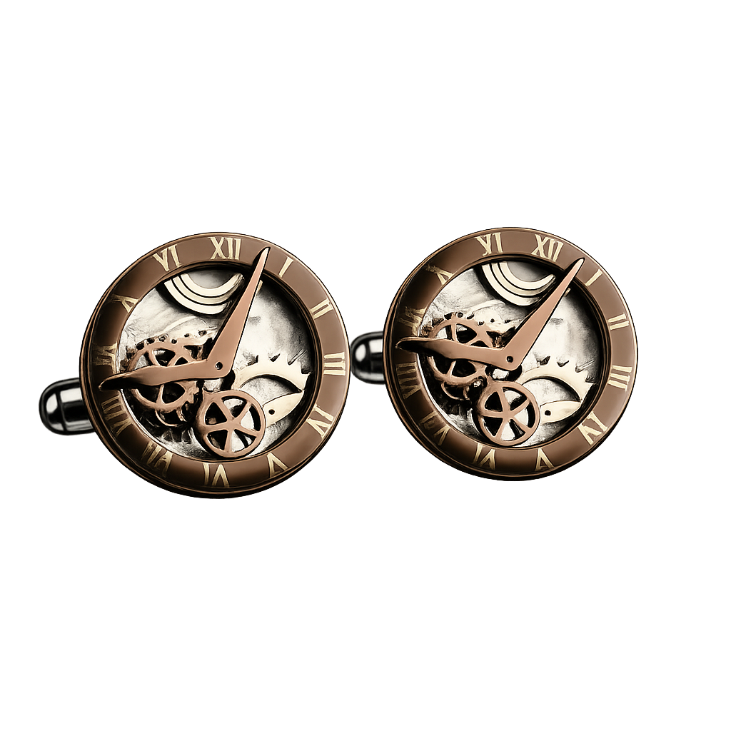 Make every gesture feel intentional. The Clockwork Roman Dial Cufflinks are designed like miniature timepieces—framed with Roman numerals, finished in a warm antique-gold tone, and built with moving mechanical gears that turn smoothly like real clockwork. It’s a bold, refined statement for men who love precision, detail, and conversation-starting design.