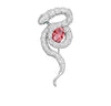 Sculpted in radiant white gold vermeil, the serpent coils with fluid precision, its body illuminated by a tapestry of brilliant simulated diamonds that shimmer with every movement. At its center rests a striking oval crimson gemstone — bold, luminous, and impossibly captivating — embraced by the serpent’s protective curve like a treasured secret.