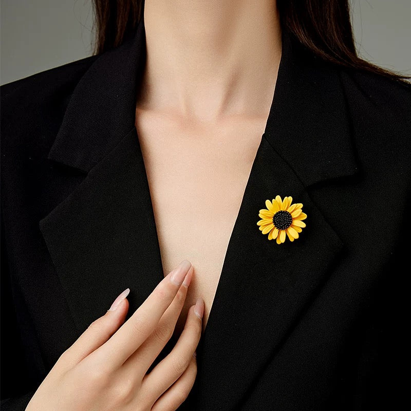 Inspired by the sunflower’s timeless devotion to the sun, the Joy in Bloom Brooch captures the spirit of optimism and light. Brilliant golden-yellow petals unfold in perfect harmony around a bold, midnight-black center — a striking contrast that represents balance, strength, and grounded confidence.