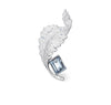At its base rests a striking emerald-cut simulated Aquamarine, cool and crystalline in tone — reminiscent of winter skies at dawn. The sleek metal curve frames the stone gracefully, adding fluidity and modern refinement to the design.