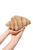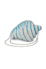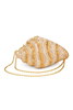 The structured hard-shell form opens to reveal a smooth satin-lined interior, finished with a polished metal frame and secure clasp. Designed to be carried as a clutch or worn with its delicate chain strap, the Concha Minaudière balances artistic form with practical elegance.