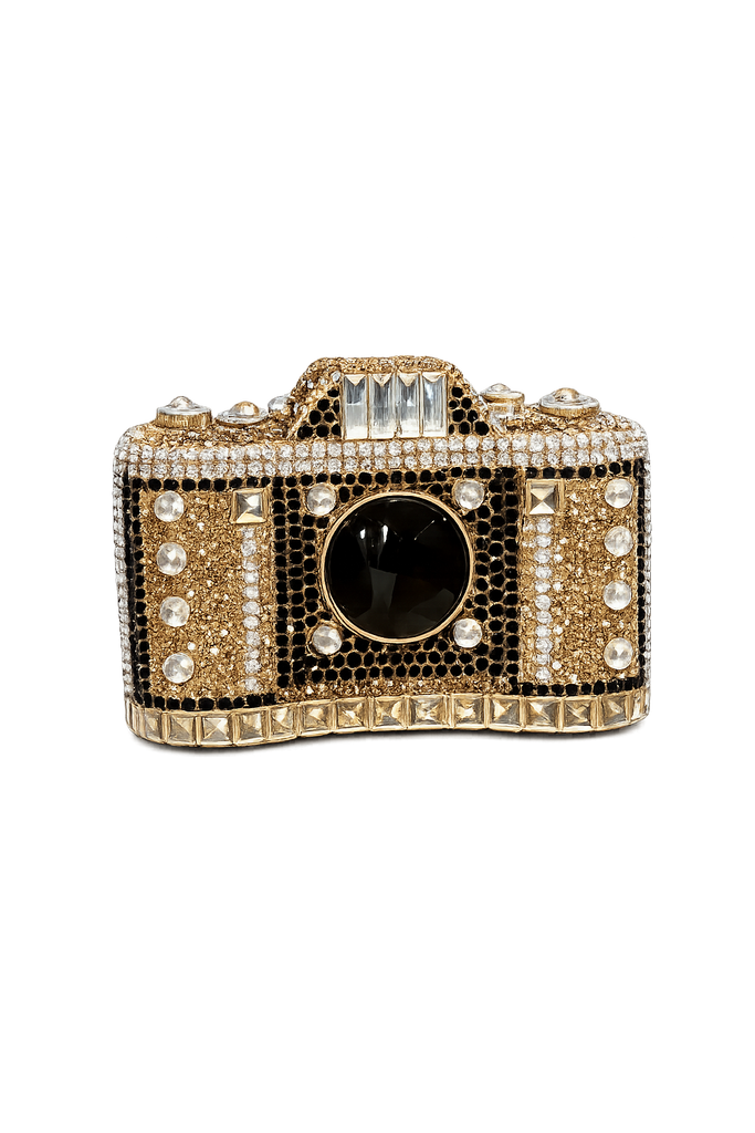 Inspired by the art of still life photography, the Still Life Minaudière transforms a familiar form into a refined object of design. Sculpted in the silhouette of a classic camera and fully encrusted with hand precision-set crystals, this evening piece captures light, contrast, and detail with deliberate restraint.