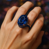 Behold "Blue Majesty," a transcendent marvel encapsulating the essence of regality and grace. At its heart lies a resplendent 52-carat oval-cut simulated blue sapphire, a celestial gem that captures the very essence of the azure sky at dawn. Encircling this majestic centerpiece, a symphony of simulated pink and blue sapphires dance with unparalleled elegance, their hues harmonizing in a celestial ballet.